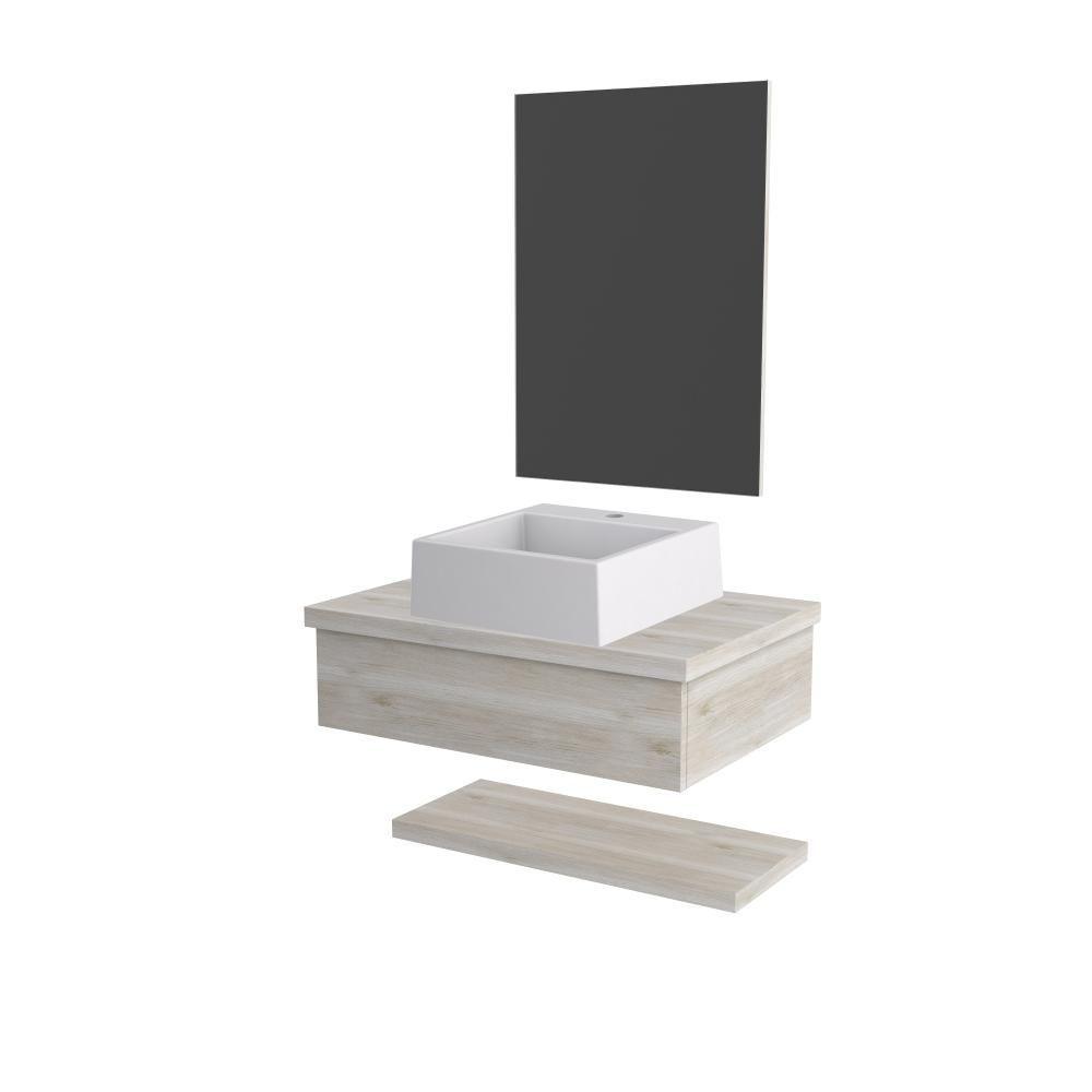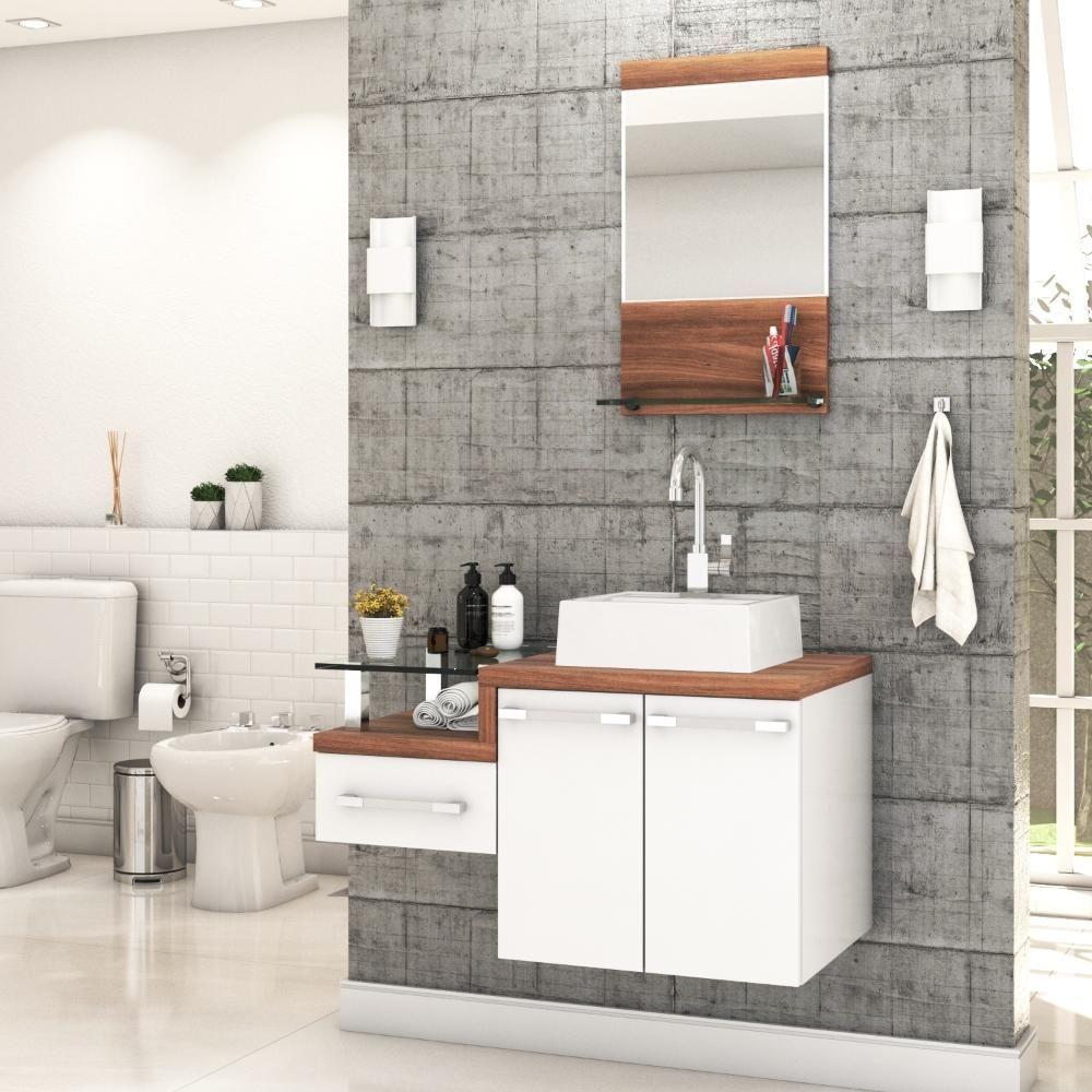 Conjunto De Banheiro Armário C- Espelho Bn3609 E Balcão Suspenso Bn3613 S- Cuba Pia 60cm Cor Amêndoa-branco - Tecno Mobili