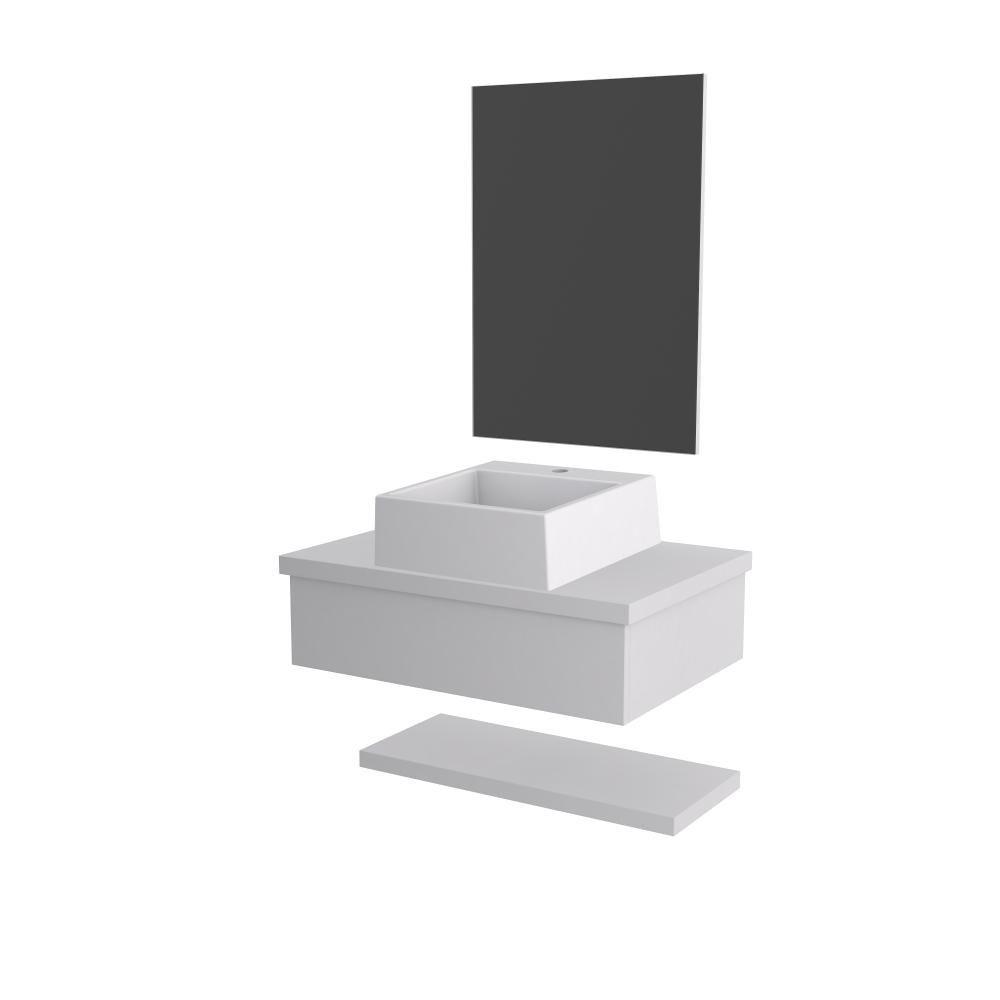Conjunto De Banheiro Armário C- Espelho Bn3609 E Balcão Suspenso Bn3613 S- Cuba Pia 60cm Cor Mármore Branco - Tecno Mobili