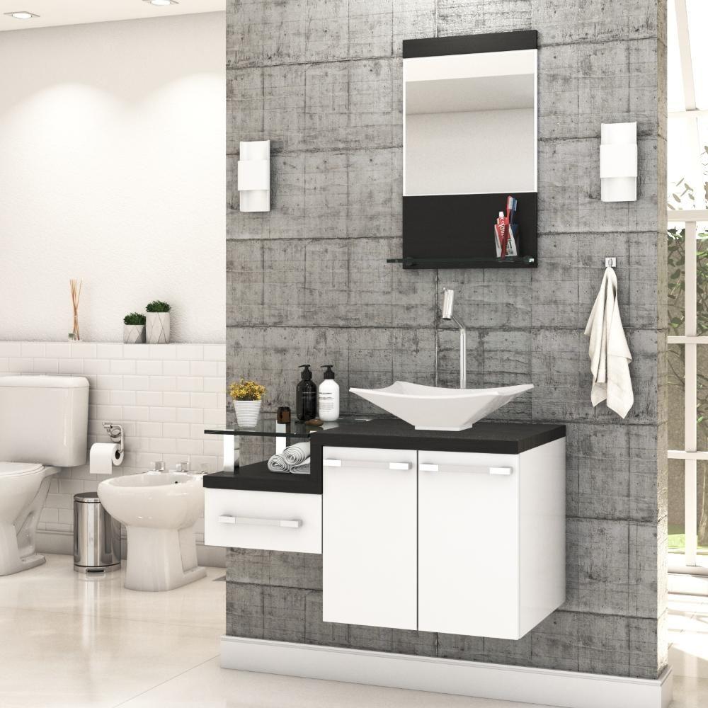 Conjunto Balcão C-cuba L38 E Espelheira Legno 831 Branco Chess C-nogal Branco Chess C-preto ônix
