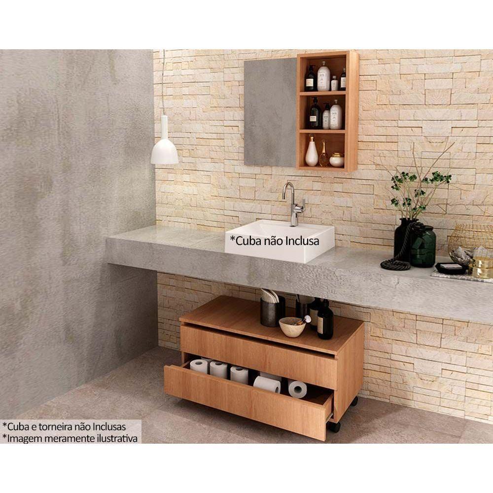 Conjunto De Banheiro Balcão C- Rodizios Bn3603 S- Cuba 80cm E Armário C- Espelho Bn3614 Amêndoa - Tecno Mobili