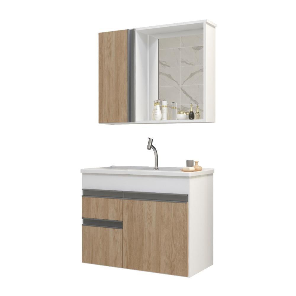 Gabinete Armario Para Banheiro Firenze Com Espelheira E Cuba Branco/areal