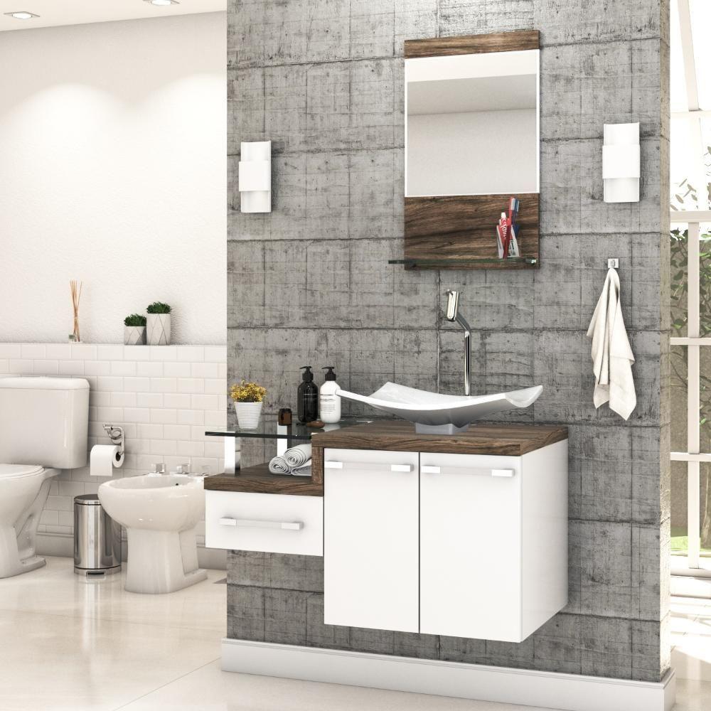 Conjunto Balcão C-cuba F44 E Espelheira Legno 831 Branco Chess C-carvalho Branco Chess C-carvalho Dark