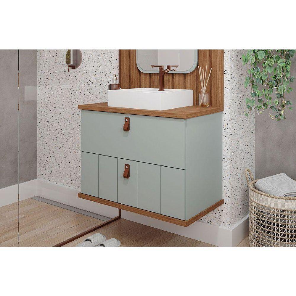 Gabinete De Banheiro Balcão Milano 1 Porta E 1 Gaveta C-cuba 80cm Pistache-freijo - Mgm