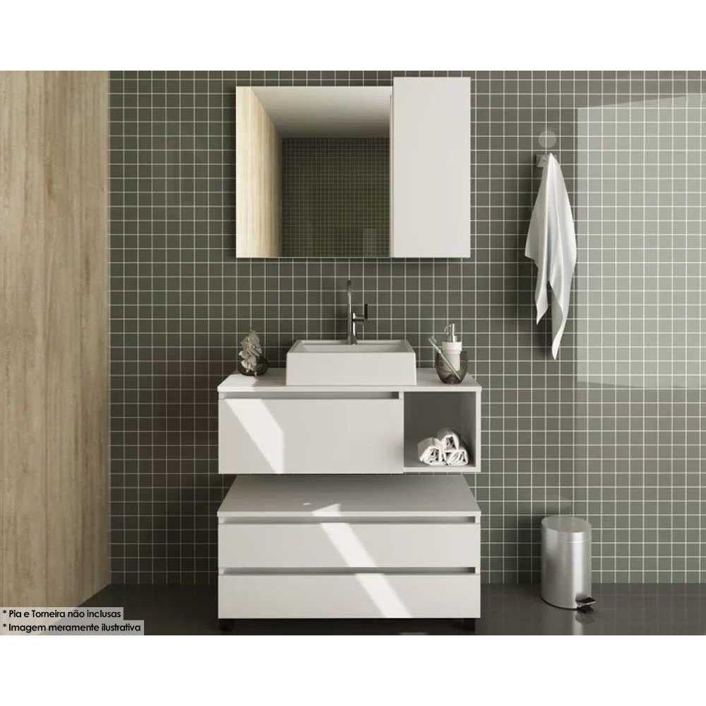 Conjunto De Banheiro Armário C- Espelho Bn3602 Balcão Suspenso Bn3601 E Balcão C- Rodizios Bn3603 S- Cuba Pia 80cm Cor Branco - Tecno Mobili