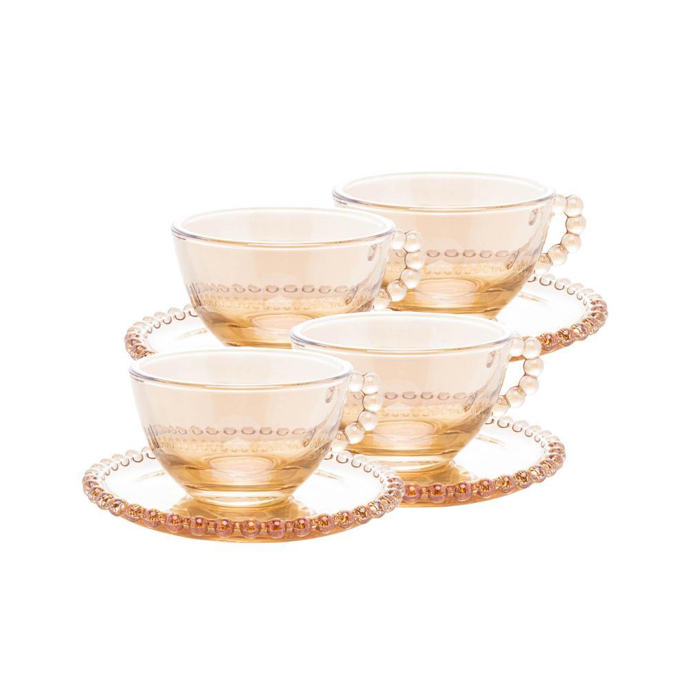 Jogo de 4 Xícaras para Chá Wolff Pearl de Cristal Âmbar