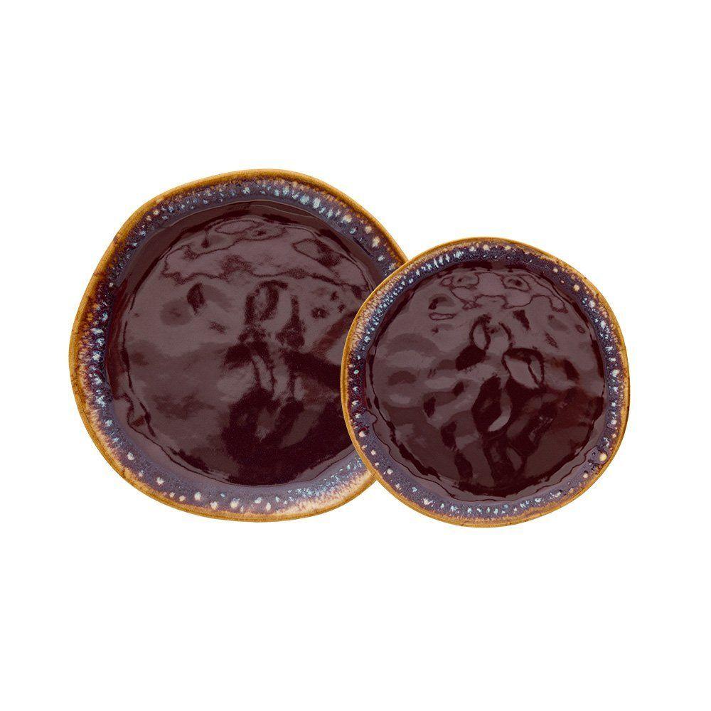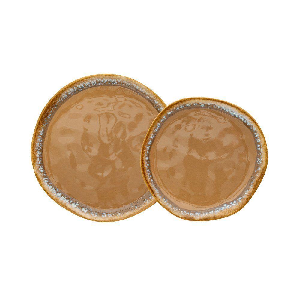 Jogo De Pratos Rústico 12pç Porcelana Sobremesa Com Colheres Laguna Tramontina