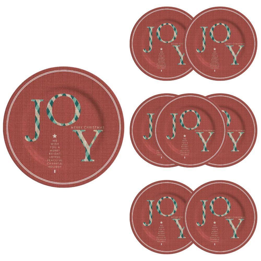 Jogo 8 Pratos Sobremesa Natalino Joy Vermelho Cerâmica Alleanza 20cm