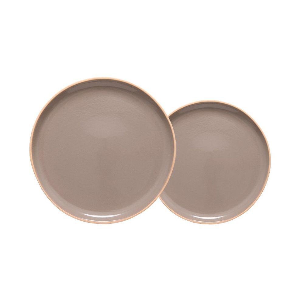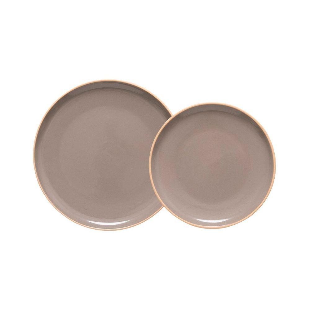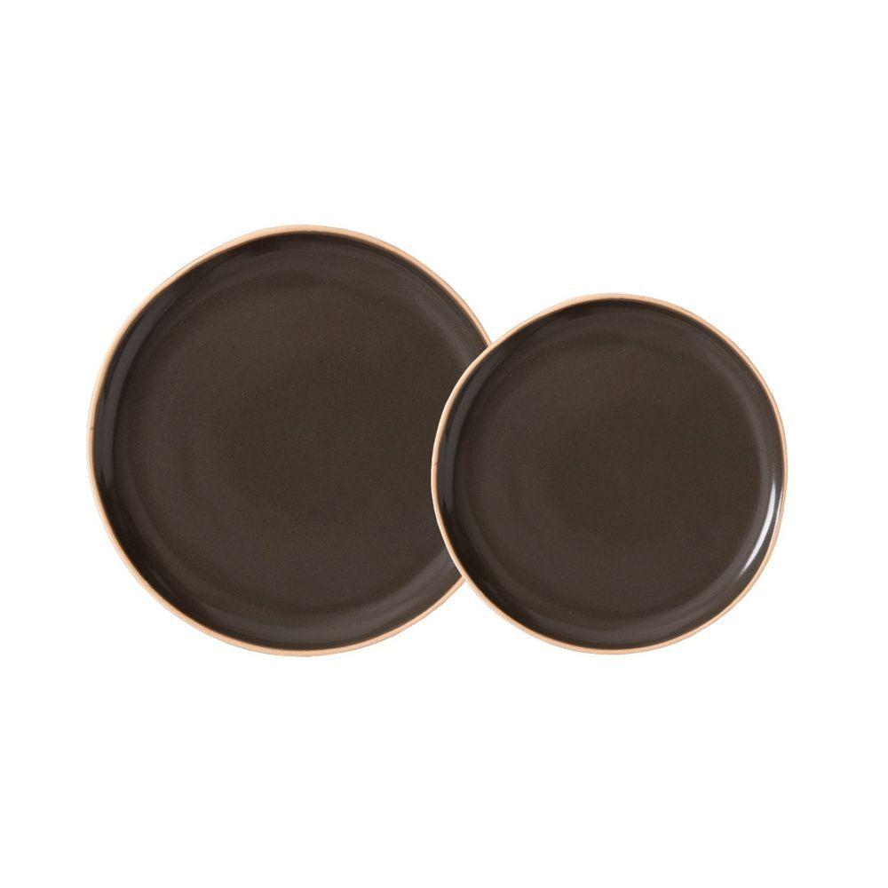 Jogo De Pratos Tramontina Rústico Marrom Em Porcelana Decorada 12 Peças
