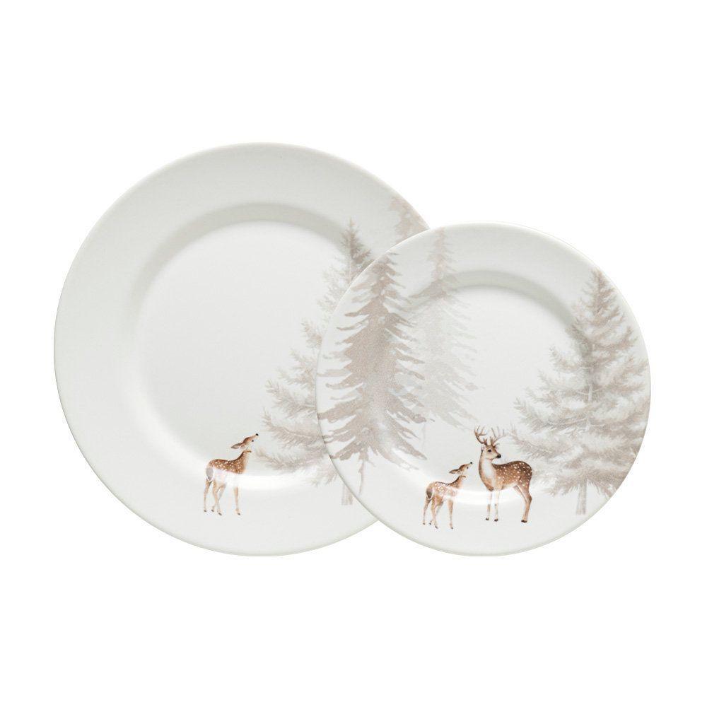 Jogo Copa E Cia 12 Peças Aquarelle Natal Em Cerâmica Rena Bosque