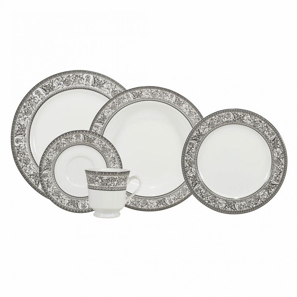 Aparelho de Jantar 42 Peças L`Hermitage Silver em Porcelana - Branco/Prata