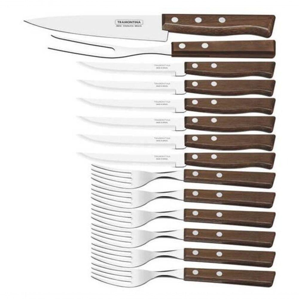 Jogo De Churrasco Tramontina Cabo De Madeira Natural 14 Peças