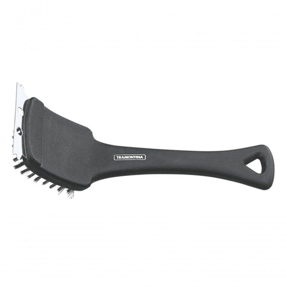 Escova Tramontina Churrasco Com Cerdas Em Aço Inox E Cabo De Polipropileno Preto 21,6cm