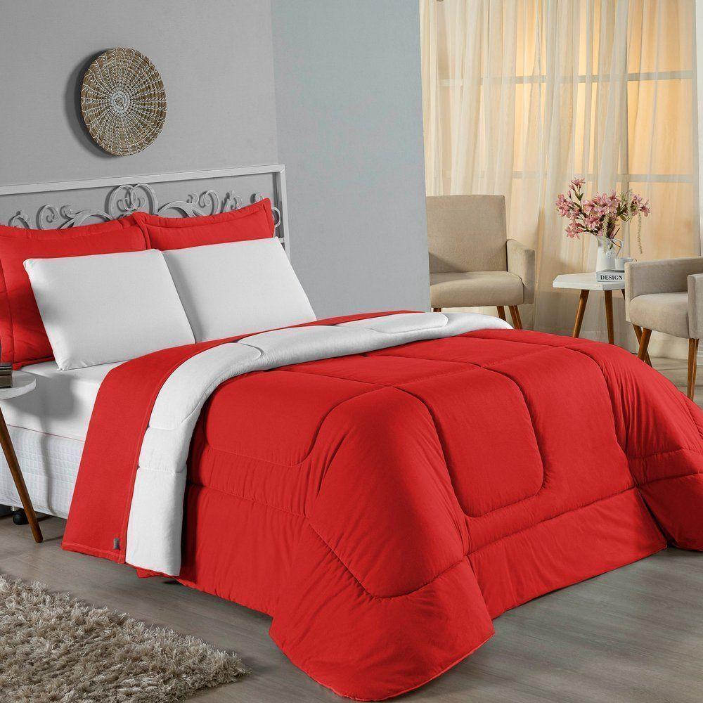 Kit Edredom Dupla Face + Jogo De Lençol Casal Viúva Nobre 6 Peças Malha 100% Algodão - Vermelho / Branco