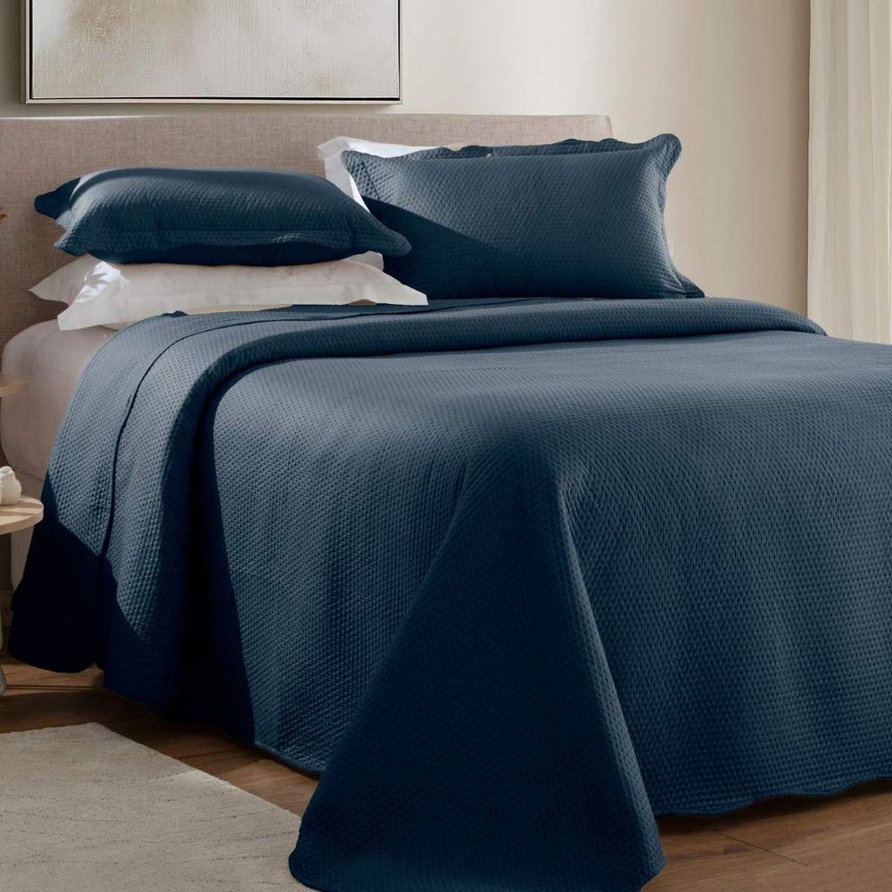 Kit Cobre Leito Queen Dots + 2 Porta Travesseiros Marinho