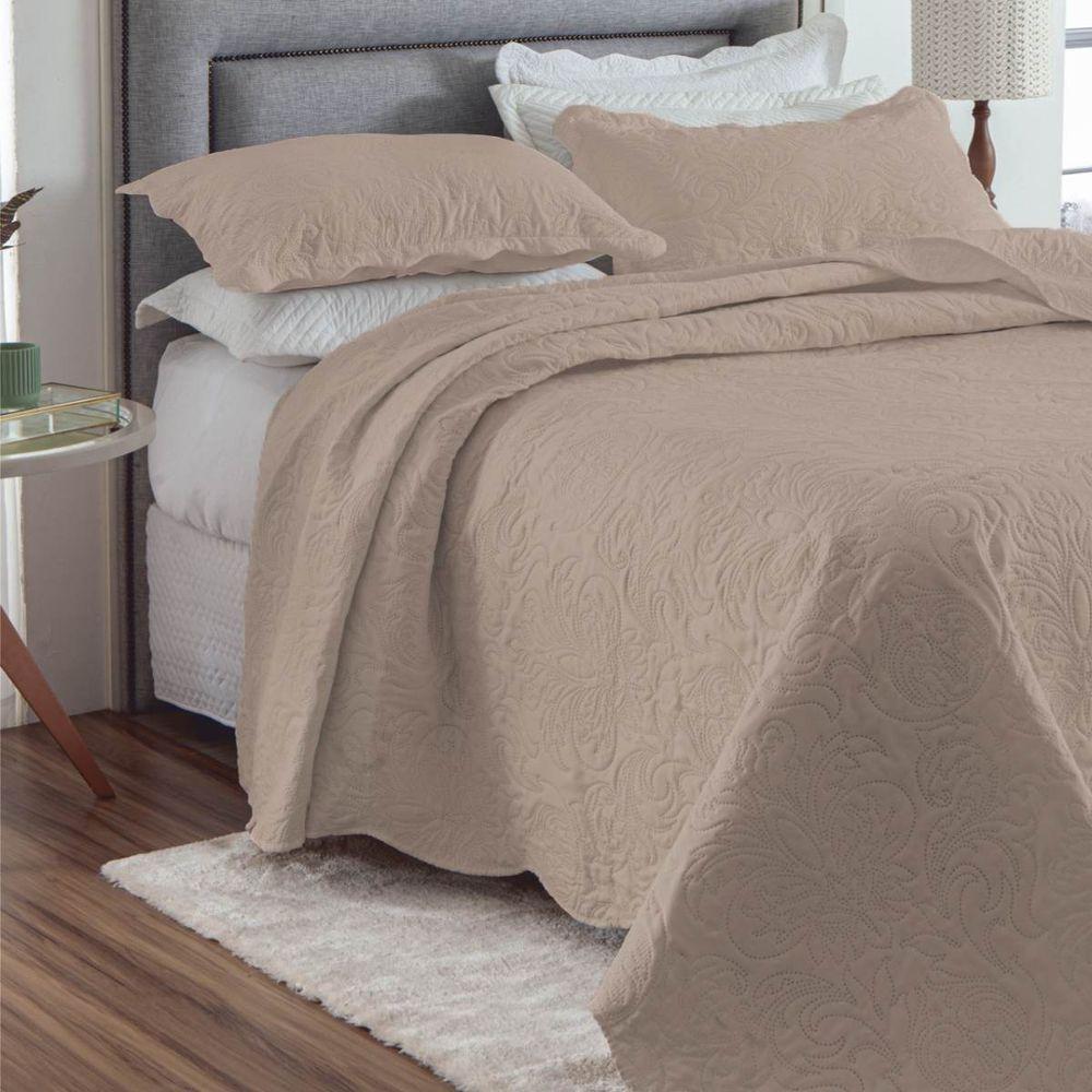 Kit Cobre Leito Casal Classic Liso Ultrasonic + 2 Porta-travesseiros Floral Bege