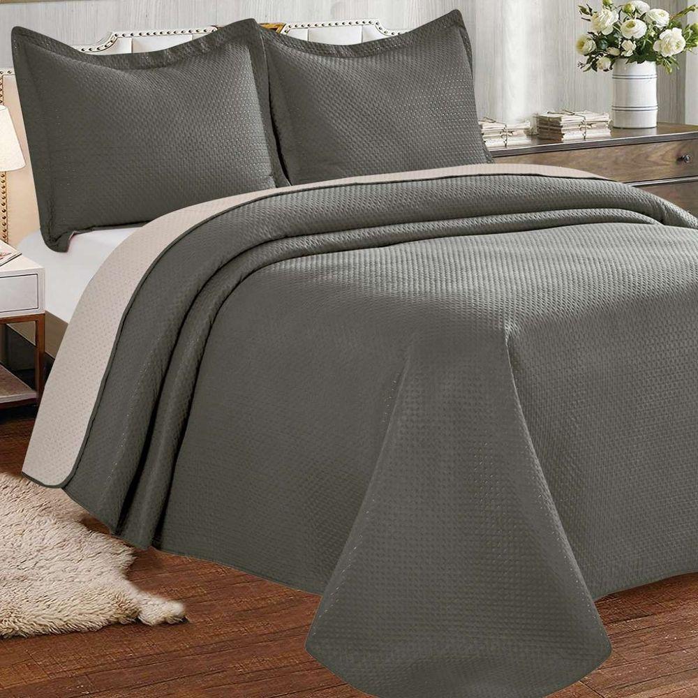 Kit Cobre Leito Casal Classic Liso Ultrasonic + 2 Porta-travesseiros Poá Chumbo