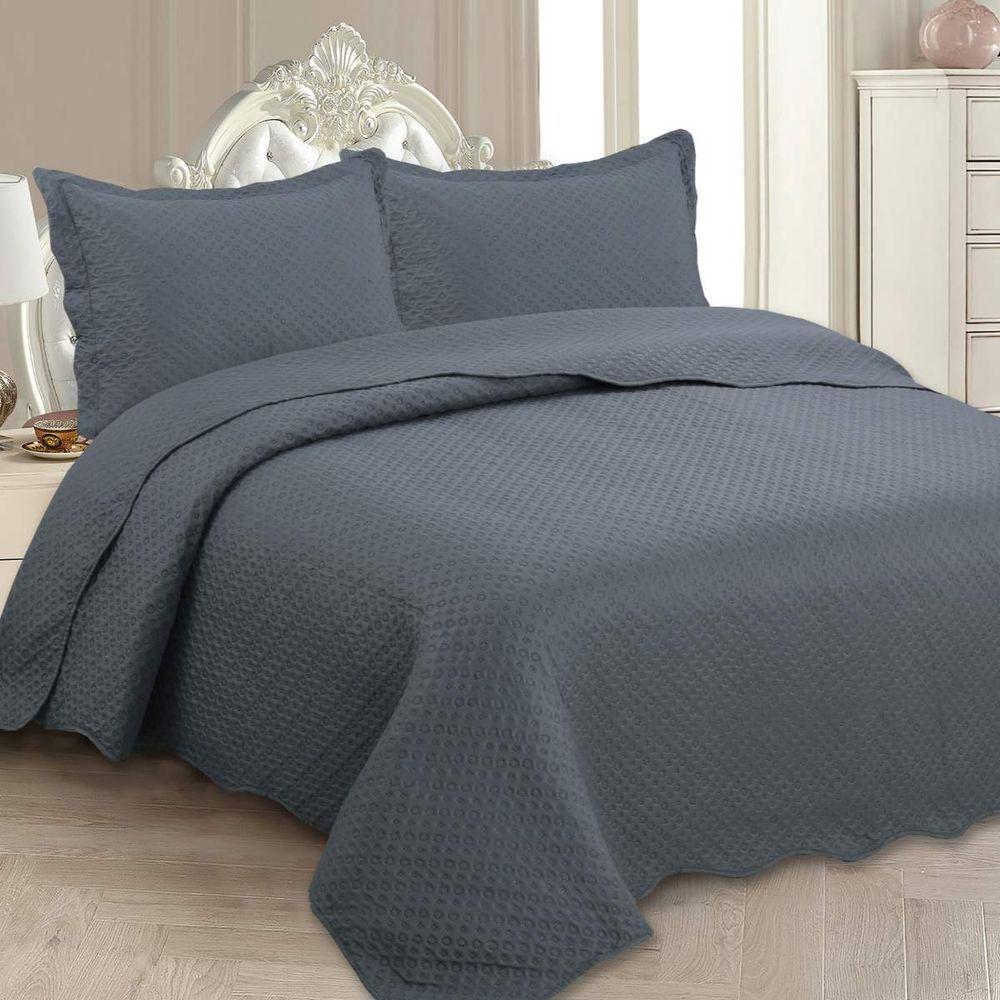 Kit Cobre Leito Queen Classic Liso Ultrasonic + 2 Porta-travesseiros Poa Chumbo