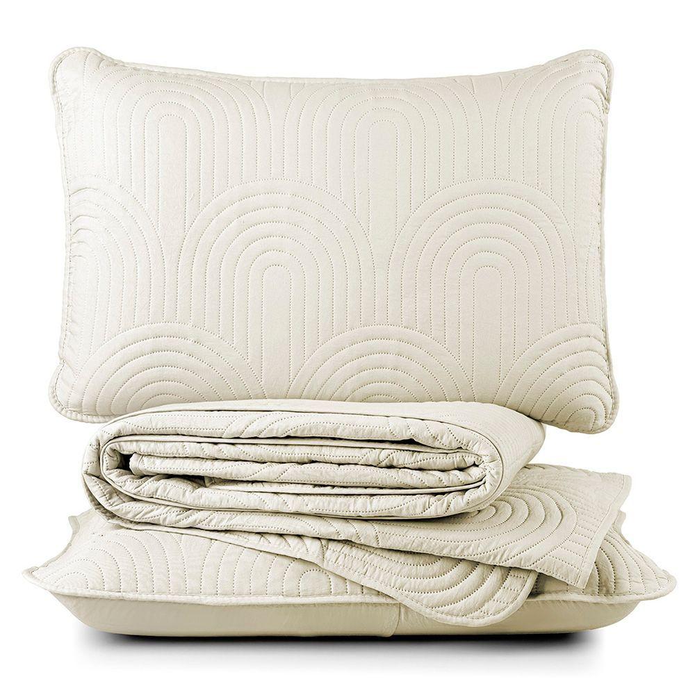 Kit Cobre Leito Colcha Harmony Casal 3 Peças Matelado Micropercal 200 Fios - Baunilha - 100% Poliéster