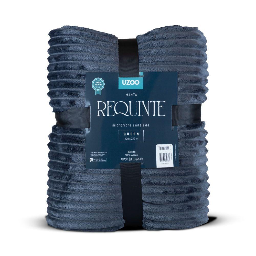 Manta Microfibra Requinte Queen Canelada 220x240cm - Uzoo Manta Microfibra Flannel Requinte Queen Canelada 220x240cm Grafite