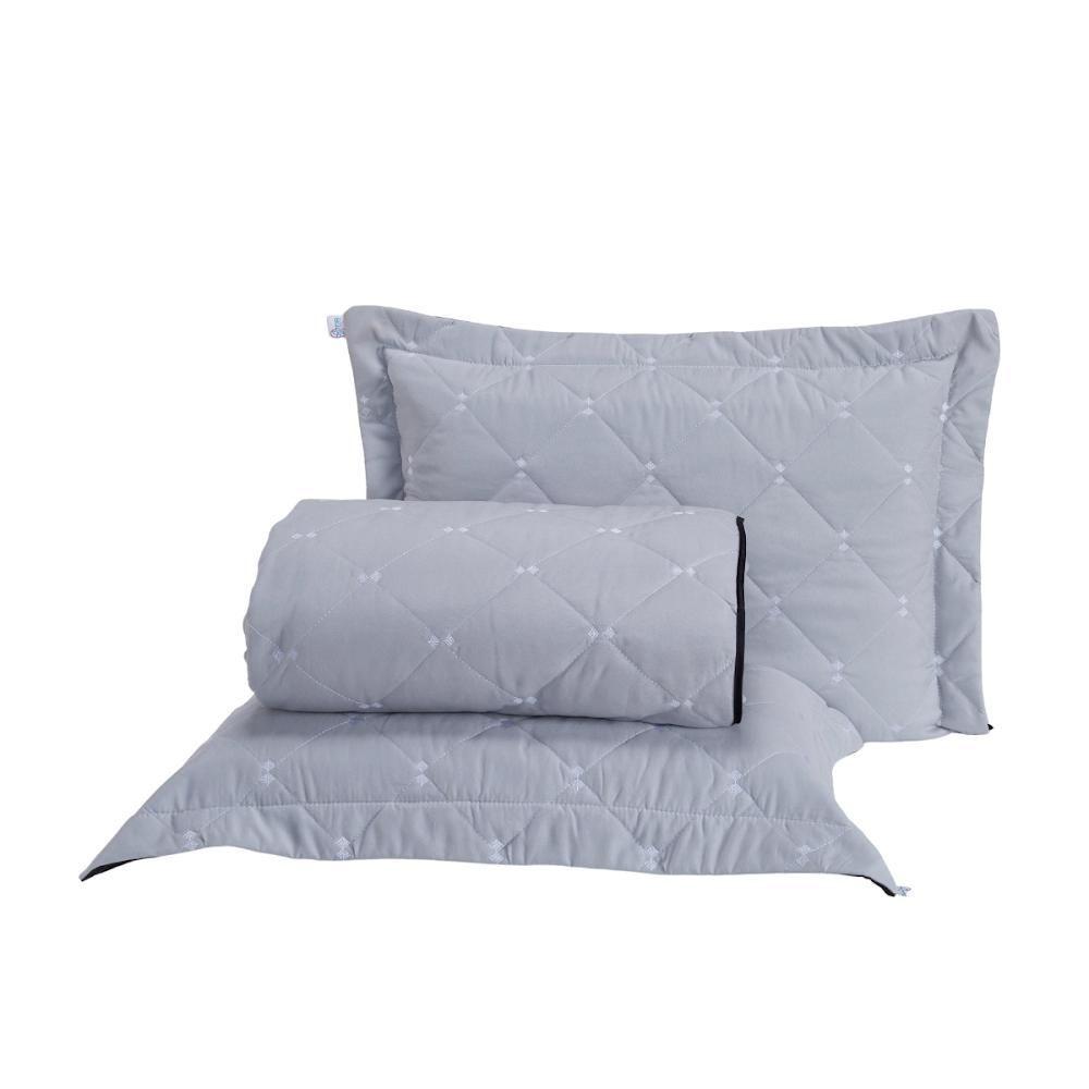 Cobre Leito Prático Padrão Dupla Face 3 Peças - Cinza