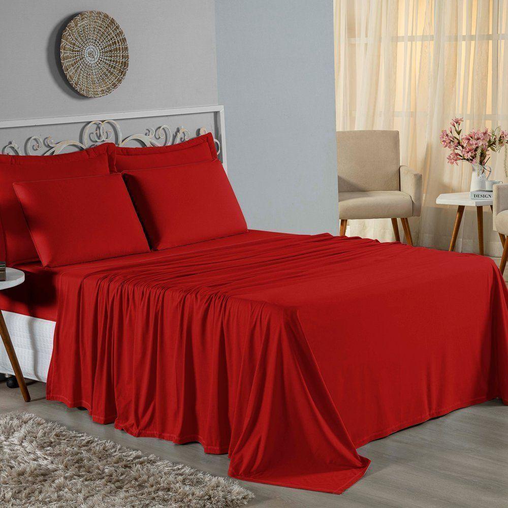 Jogo De Cama Solteiro Nobre 3 Peças Lençol Com Elástico De 30cm De Altura Malha 100% Algodão - Vermelho