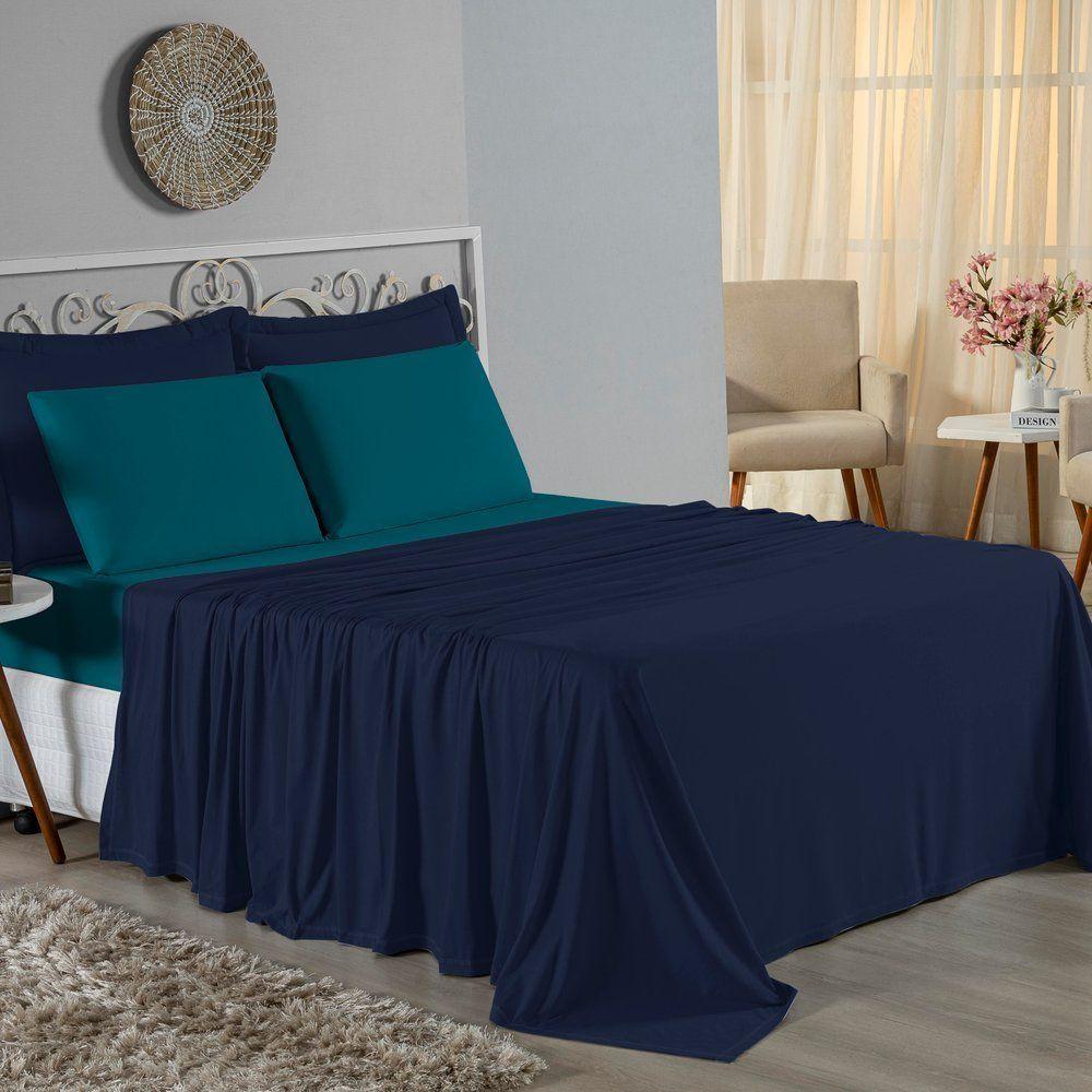 Jogo De Cama Solteiro Nobre 3 Peças Lençol Com Elástico De 30cm De Altura Malha 100% Algodão - Azul-marinho / Petróleo