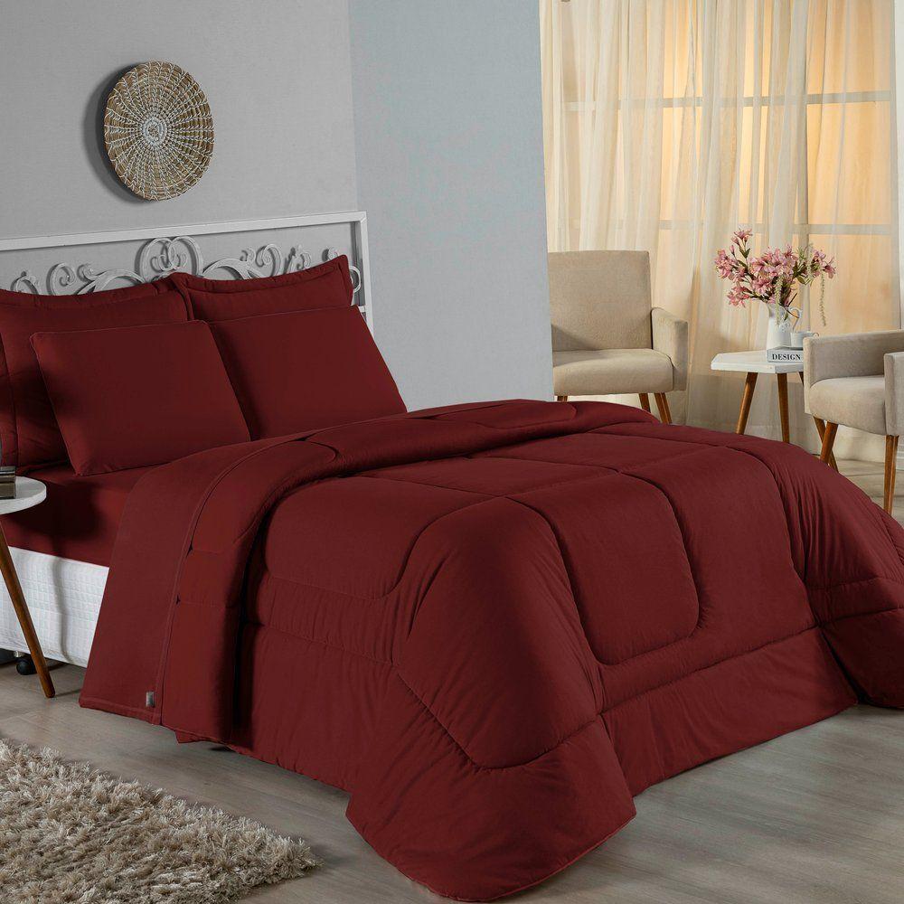 Edredom Solteiro Nobre 1 Peça Dupla Face 1,60m X 2,40m Malha 100% Algodão - Vinho
