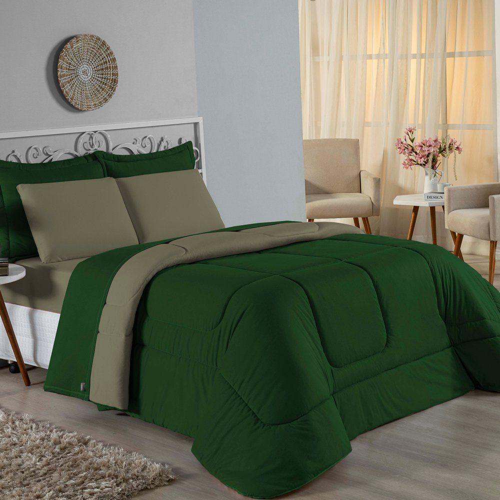 Edredom Solteiro Nobre 1 Peça Dupla Face 1,60m X 2,40m Malha 100% Algodão - Verde-bandeira / Avelã
