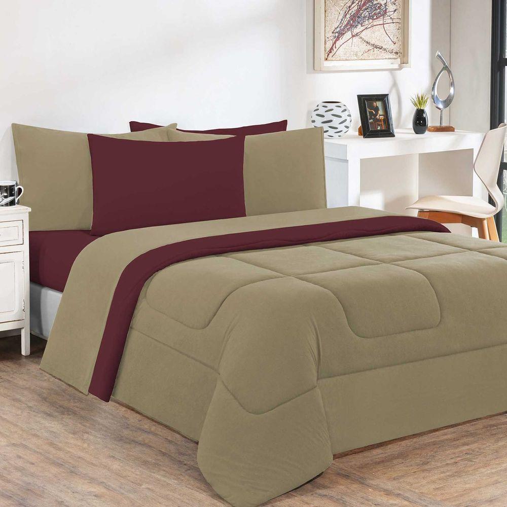 Kit Cobre Leito Toscano Micropercal Dupla Face Queen 05 Peças - Bege