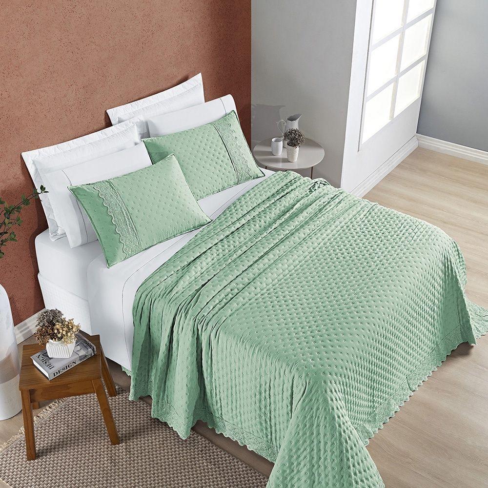 Kit Cobre Leito Colcha Dobby Queen 3 Peças Matelado 180 Fios - Cinza