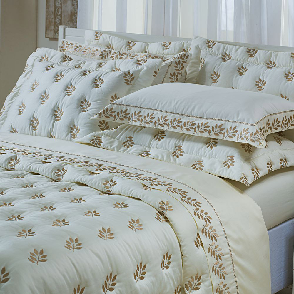 Kit Cobre Leito Colcha Garland Queen 100% Algodão 400 Fios Acetinado Bordado 5 Peças - Bege