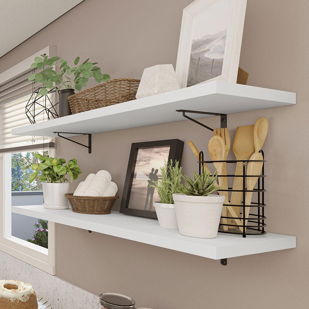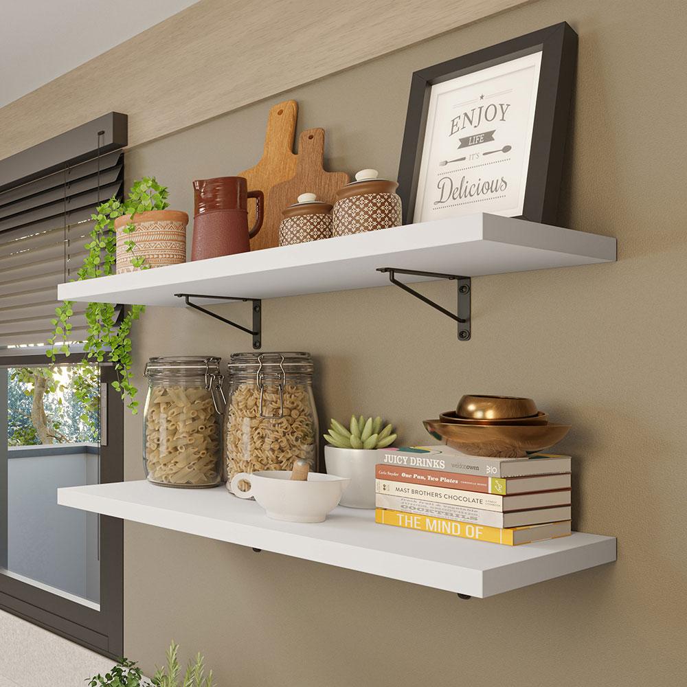 Kit 2 Prateleiras Suspensas para Cozinha Madesa 80 cm com Mão Francesa - Branco