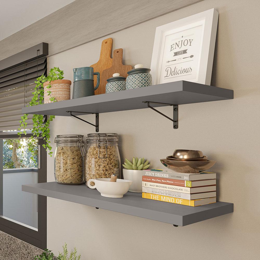 Kit 2 Prateleiras Suspensas para Cozinha Madesa 80 cm com Mão Francesa - Cinza