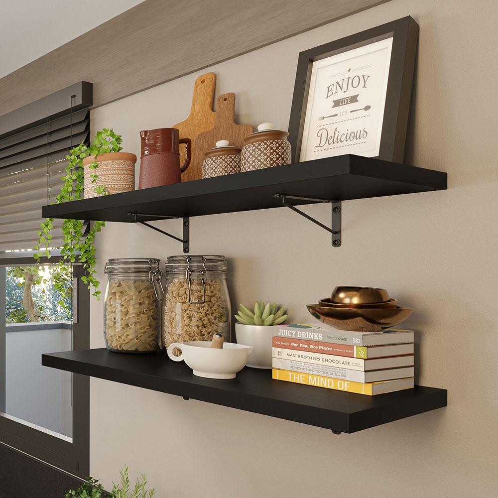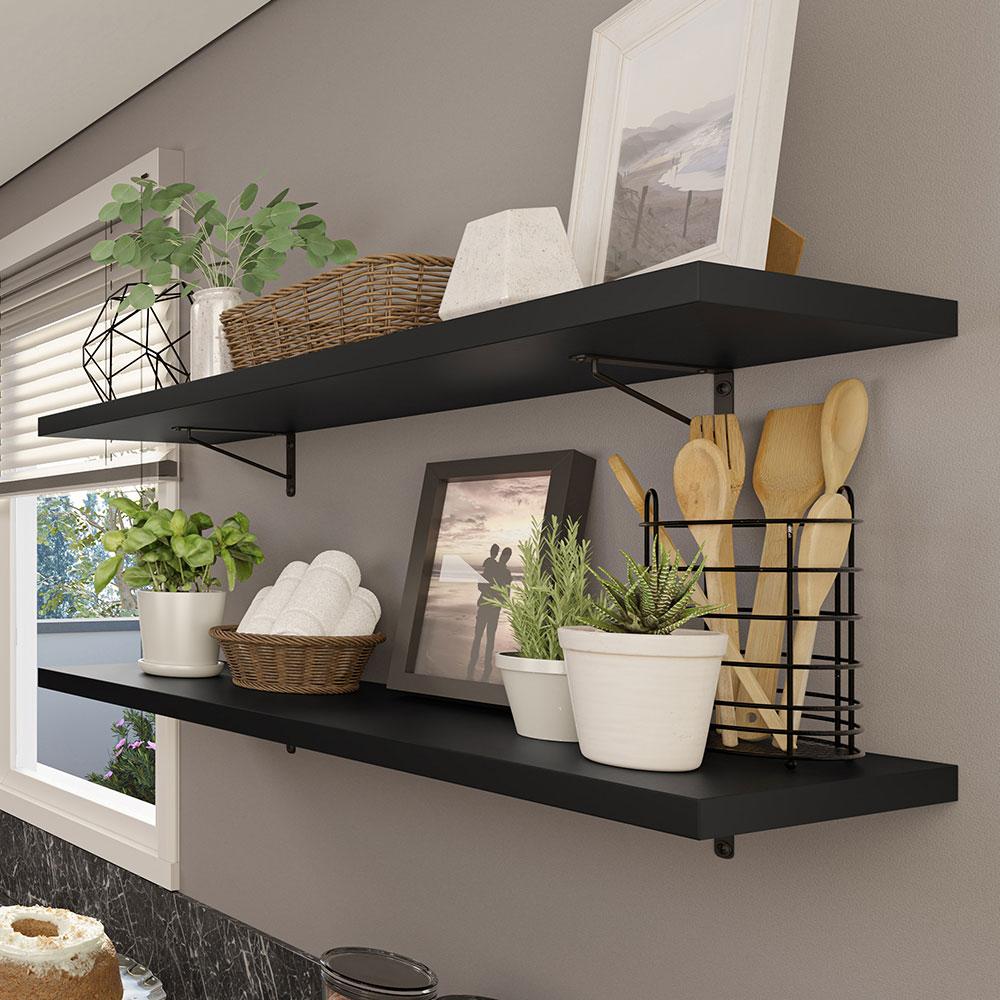 Kit 2 Prateleiras Suspensas para Cozinha Madesa 80 cm com Mão Francesa - Preto