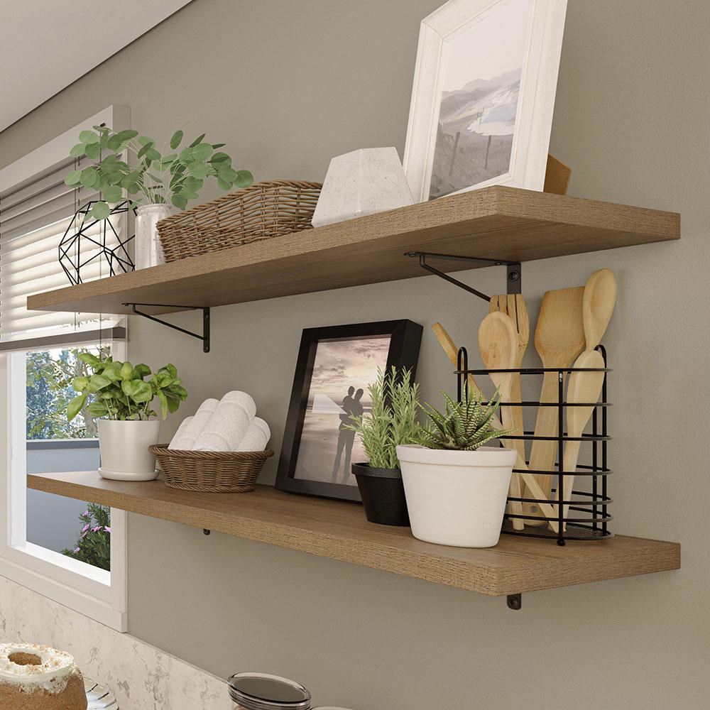 Kit 2 Prateleiras Suspensas para Cozinha Madesa 80 cm com Mão Francesa - Rustic