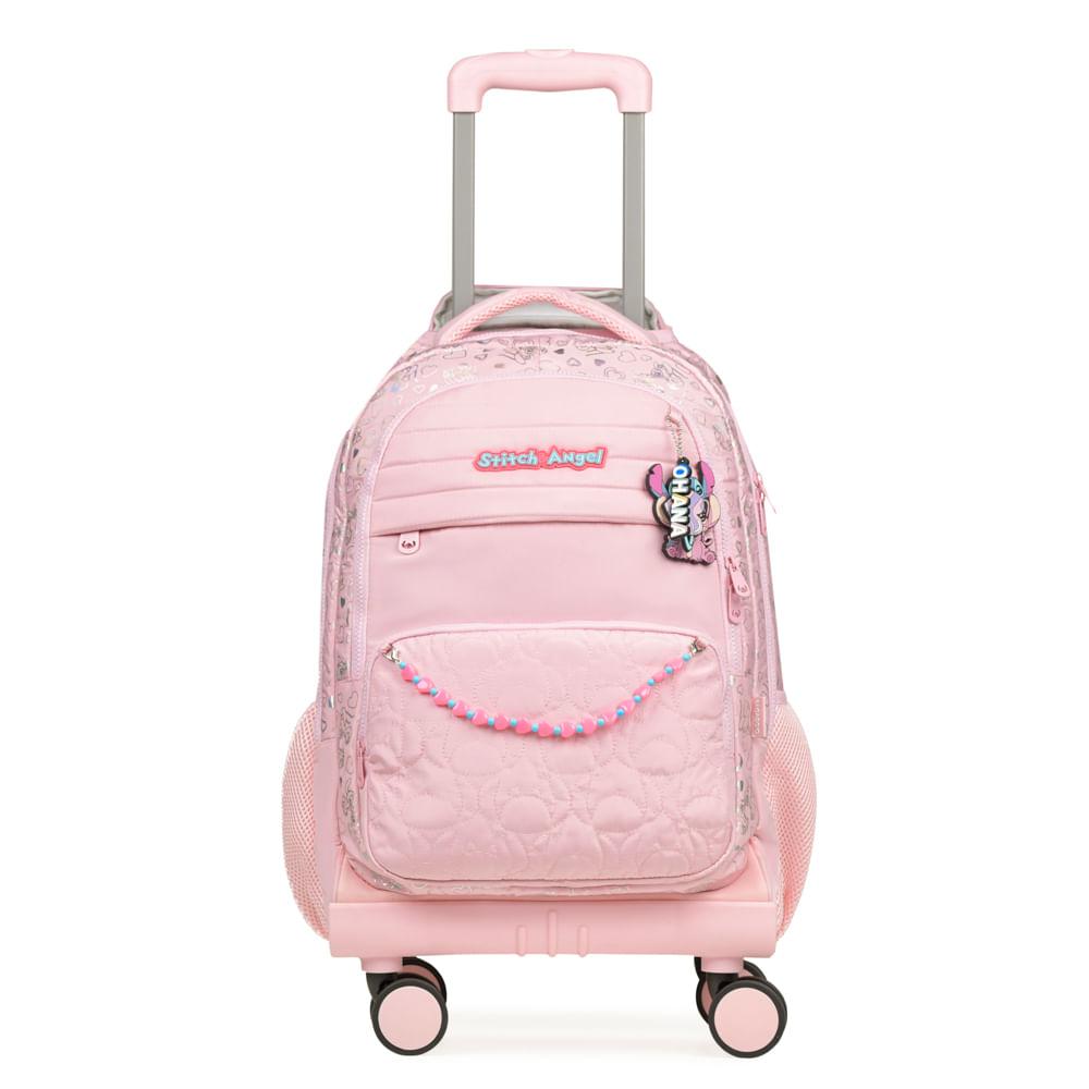 Mochila de 4 Rodinhas Feminina Stitch & Angel Rosa Claro