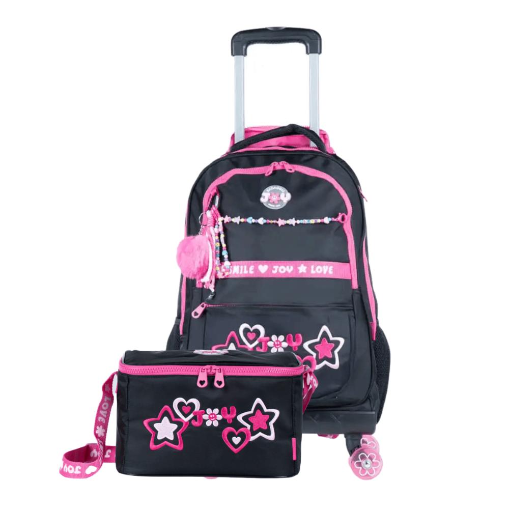 Kit Mochila de Rodinha Feminina + Lancheira Térmica Juvenil BG Joy Preta