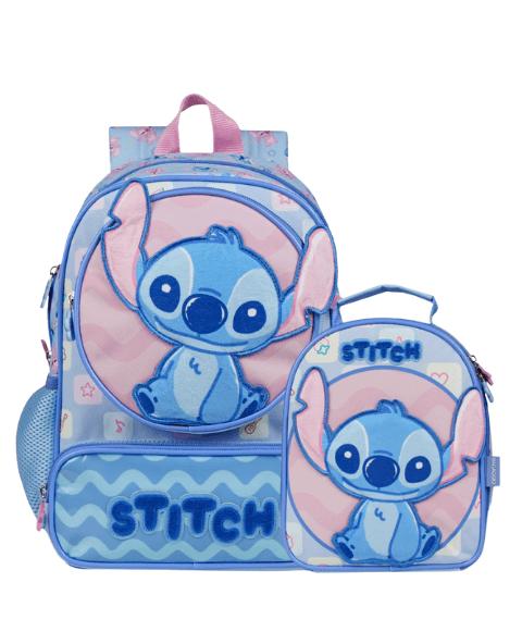 Kit Mochila Escolar e Lancheira Térmica Stitch Baby Azul