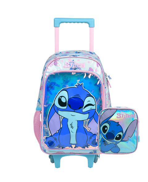 Kit Mochila de Rodinha e Lancheira Térmica Infantil Feminina Stitch Azul