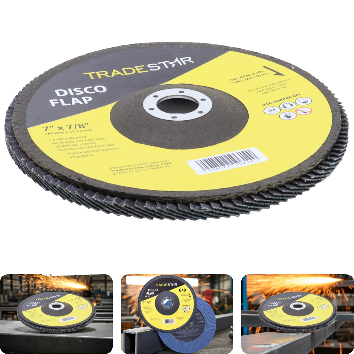 Disco Flap 180 mm G40 Fibra Conico Azul Aço e Inox Tradestar