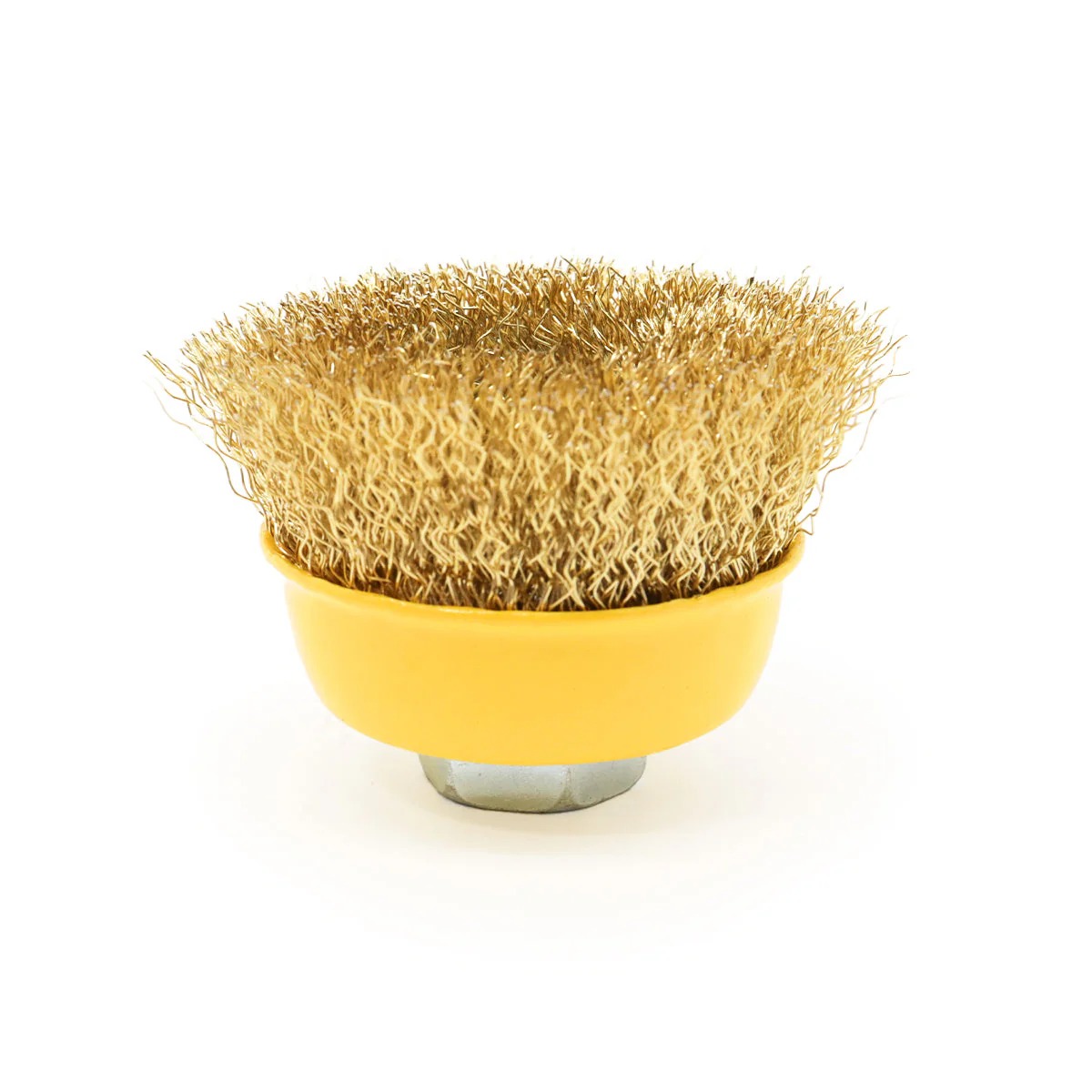Escova Copo 3'' Aço Latonado Ondulado Rosca M14 Tradestar