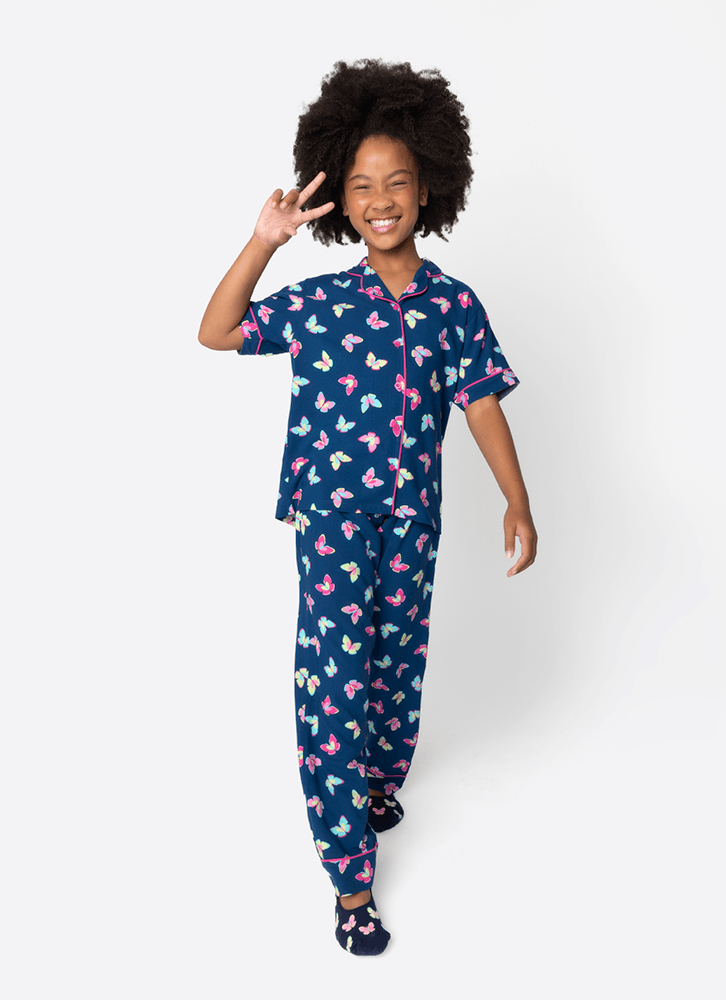 Pijama Manga Curta Viscose Menina Teen Borboletas
