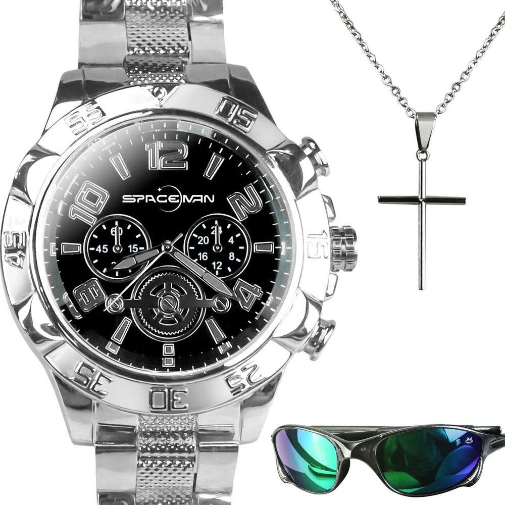 Relogio Aço Masculino Prova Dagua + Cordão Cruz + Oculos Sol Catolico Qualidade Premium Casual Azul