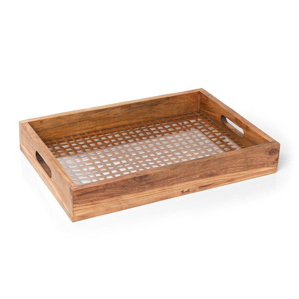 Bandeja com Espelho Wolff de Aço Inox Prata 41cm x 26cm