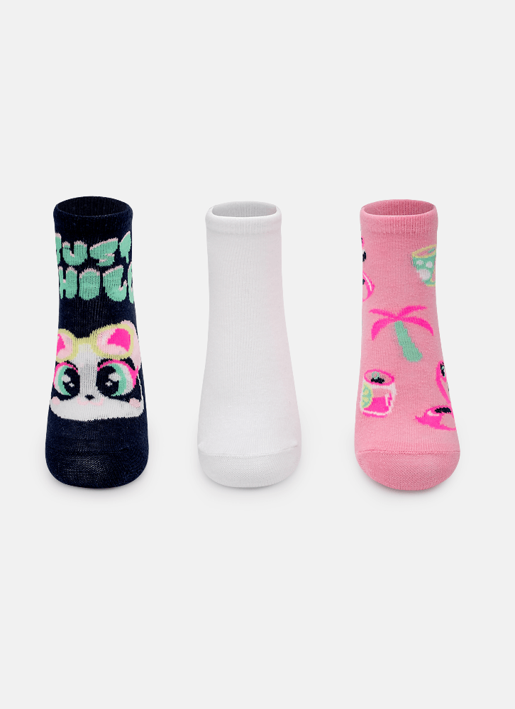Kit com 3 meias Menina Panda Miami