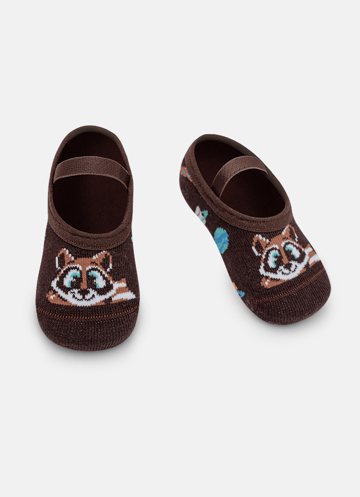 Meia Sapatilha Bebê Menino Guaxinim Chocolate