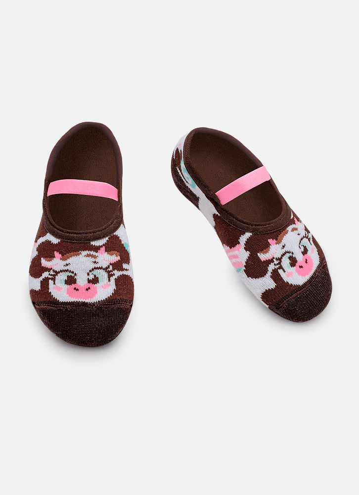 Meia Sapatilha Antiderrapante Bebê Menina Vaca Chocolate