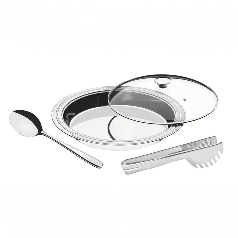 Jogo Para Servir Tramontina Ciclo Aço Inox Com Tampa De Vidro 3 Peças
