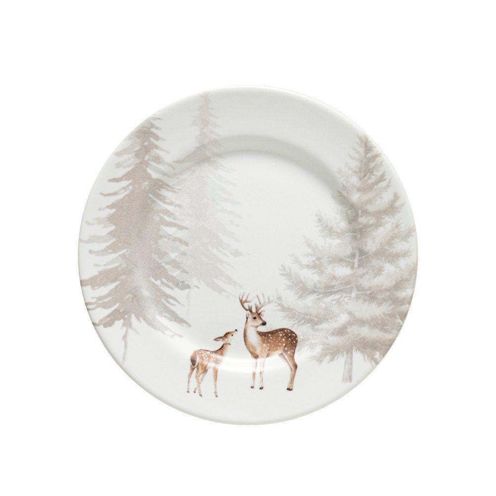 Prato De Sobremesa Copa E Cia Aquarelle Natal Em Cerâmica Rena Duo