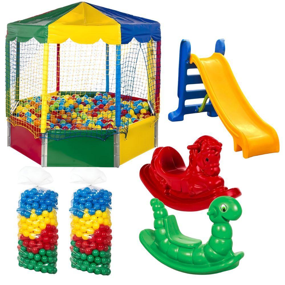 Piscina De Bolinha Oitavada 2,00m Com 1000 Bolinhas Escorrega Medio E 2 Gangorras 1 Lugar